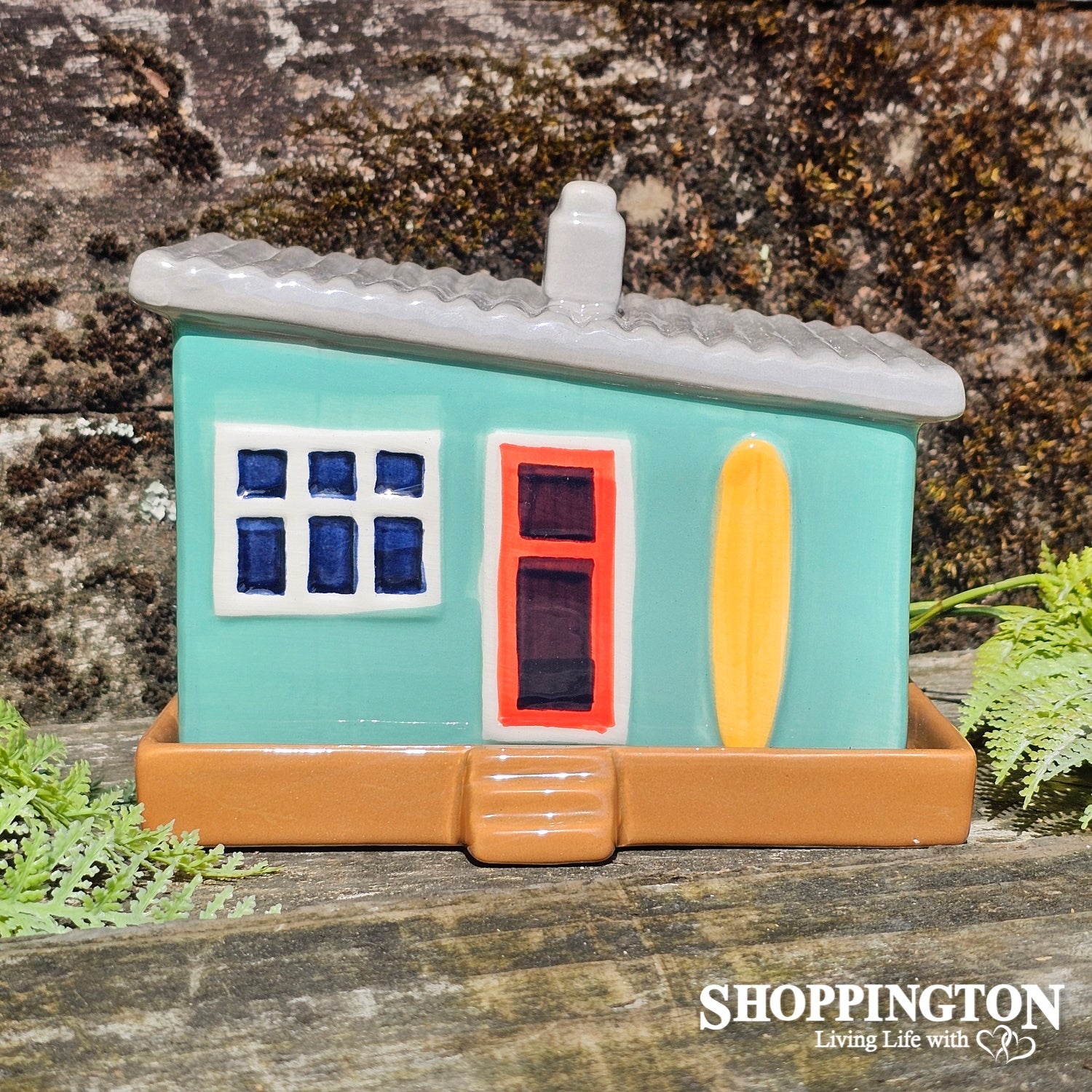 Retro kiwi bach ceramic butter dish - fits a full 500gm butter