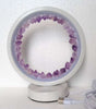 Round shaped LED table lamp with a Amethyst crystal surround.