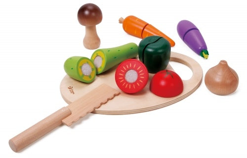 Cutting Vegetables is a game that helps children to recognise different fruits and the safe use of a knife through play. Given a child„s strong ability to imitate, this activity helps them learn the fine motor skills required to cut vegetables in a safe environment. They can then learn to share the sliced vegetables with others improving their social awareness and the importance of sharing, enlightening their affection towards others.