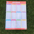 The Educational Addions Poster shows division for numbers 1 to 12 in a colourful way with different cute objects assign to each number.