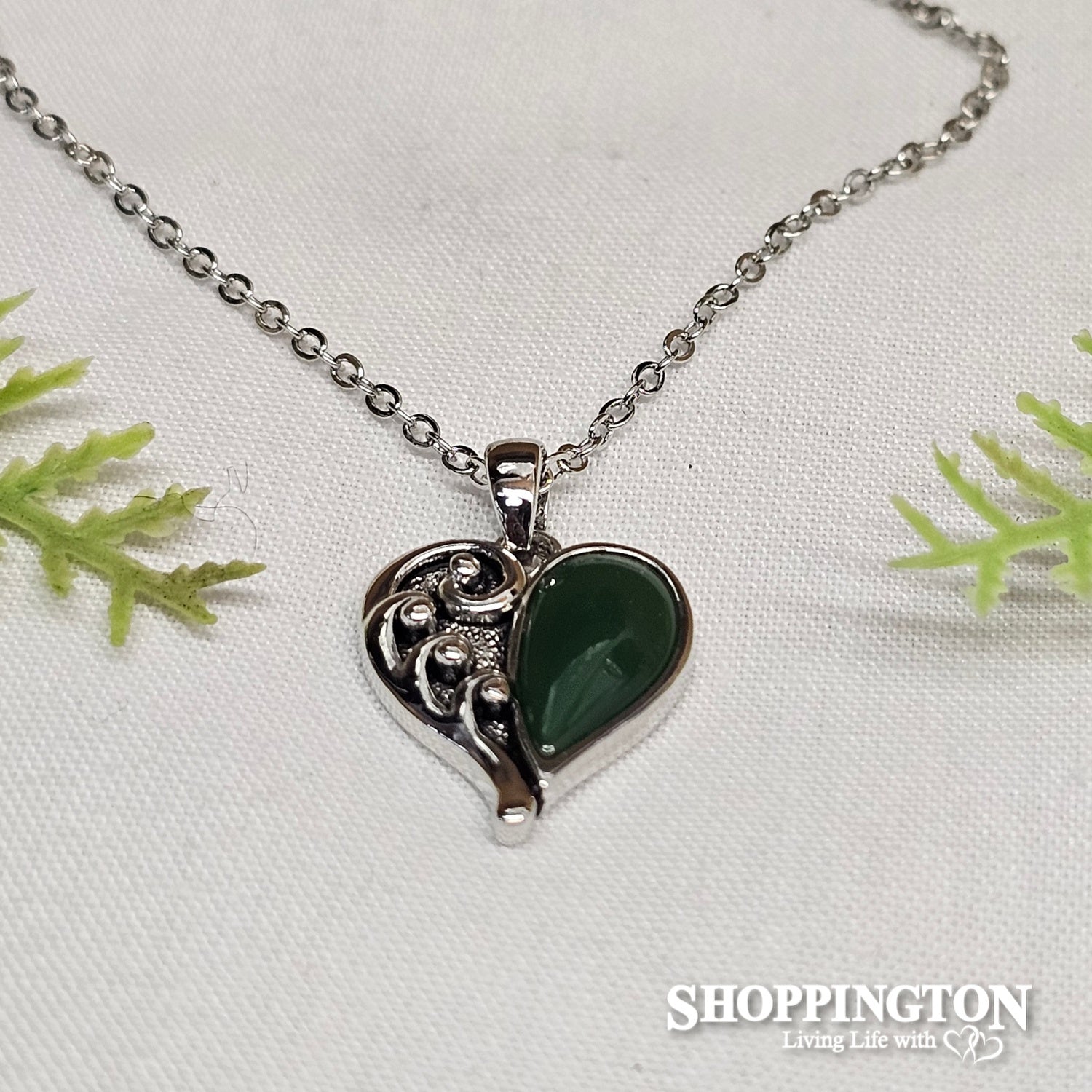 Green & Silver Koru Heart Necklace