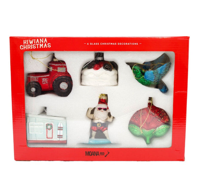 Modern, whimsical and quintessentially Kiwi Christmas decoration boxset by Moana Road.