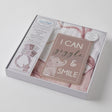 Contains a cotton muslin blanket and baby milestone photo cards.