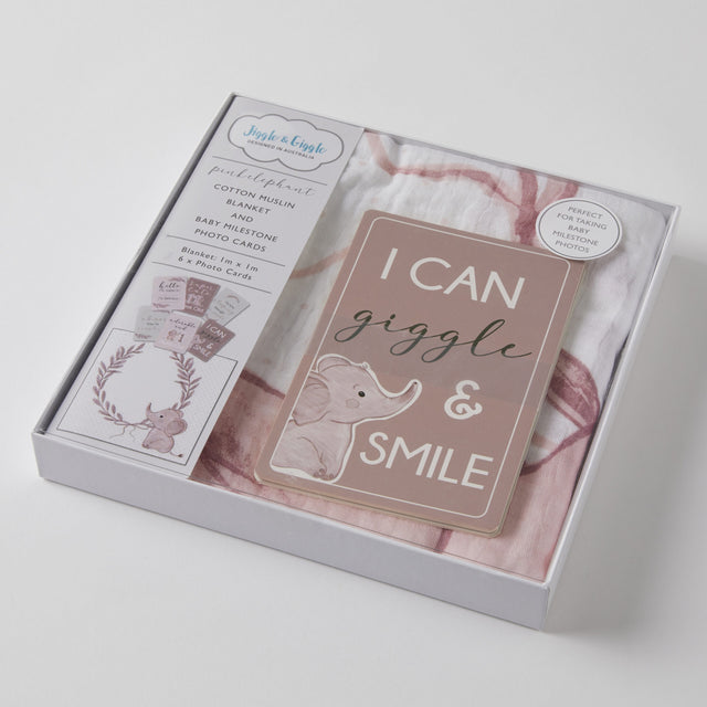 Pink Elephant Milestone Muslin Set is backordered and will ship as soon as it is back in stock.