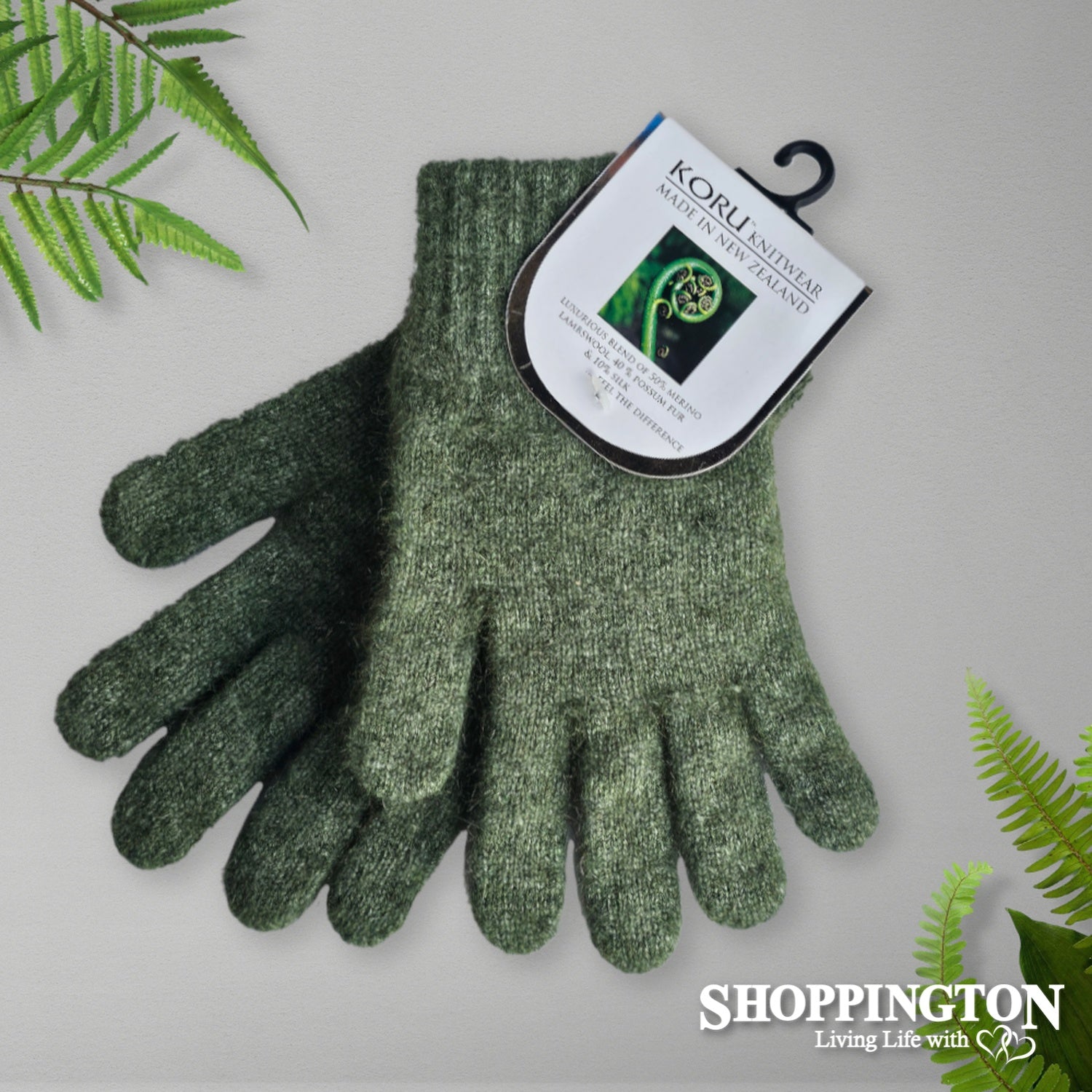 NZ Made Koru Knitwear - Possum Merino Gloves / Moss