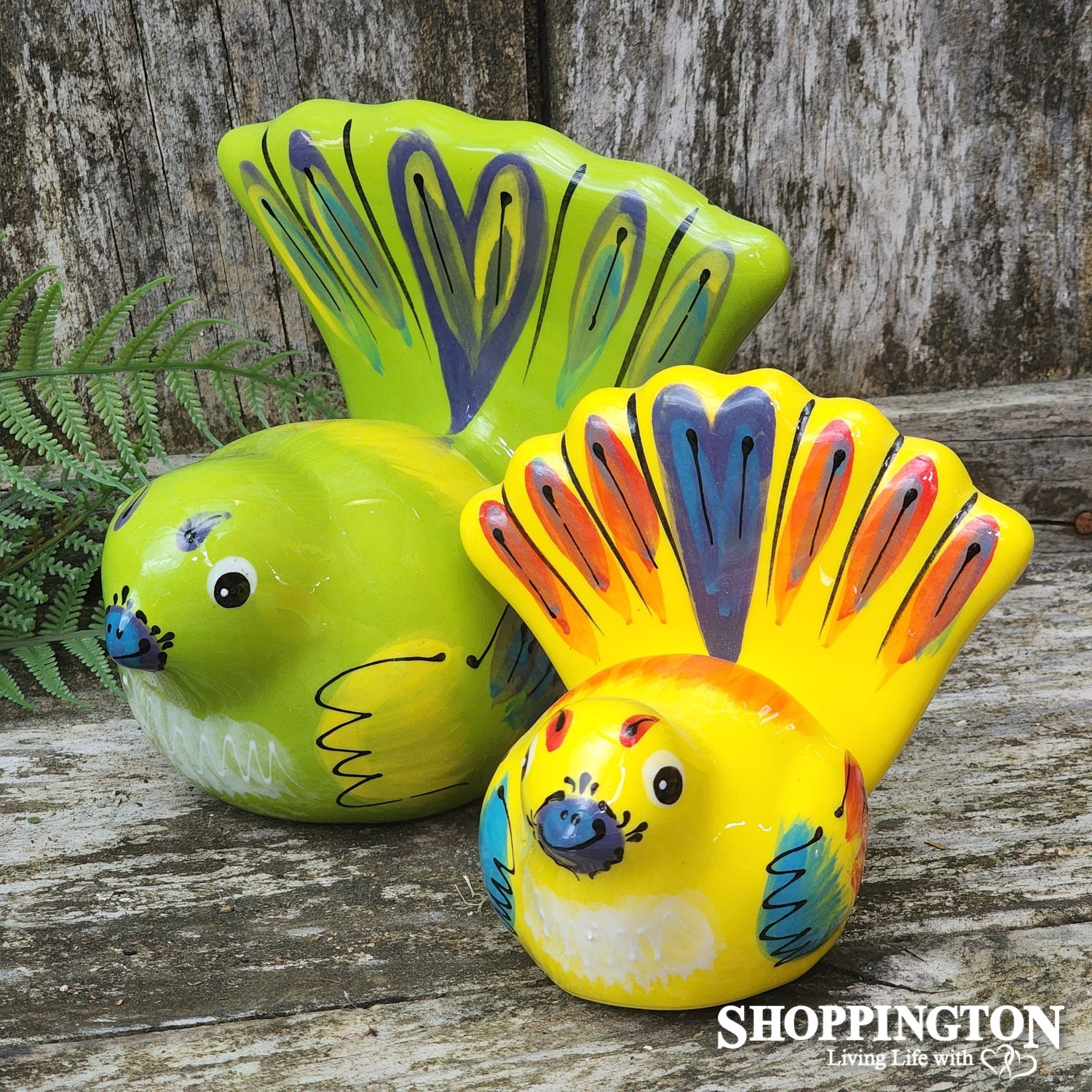 NZ Made Garden Ornament - Splashy Bird Art / Coloured Fantails