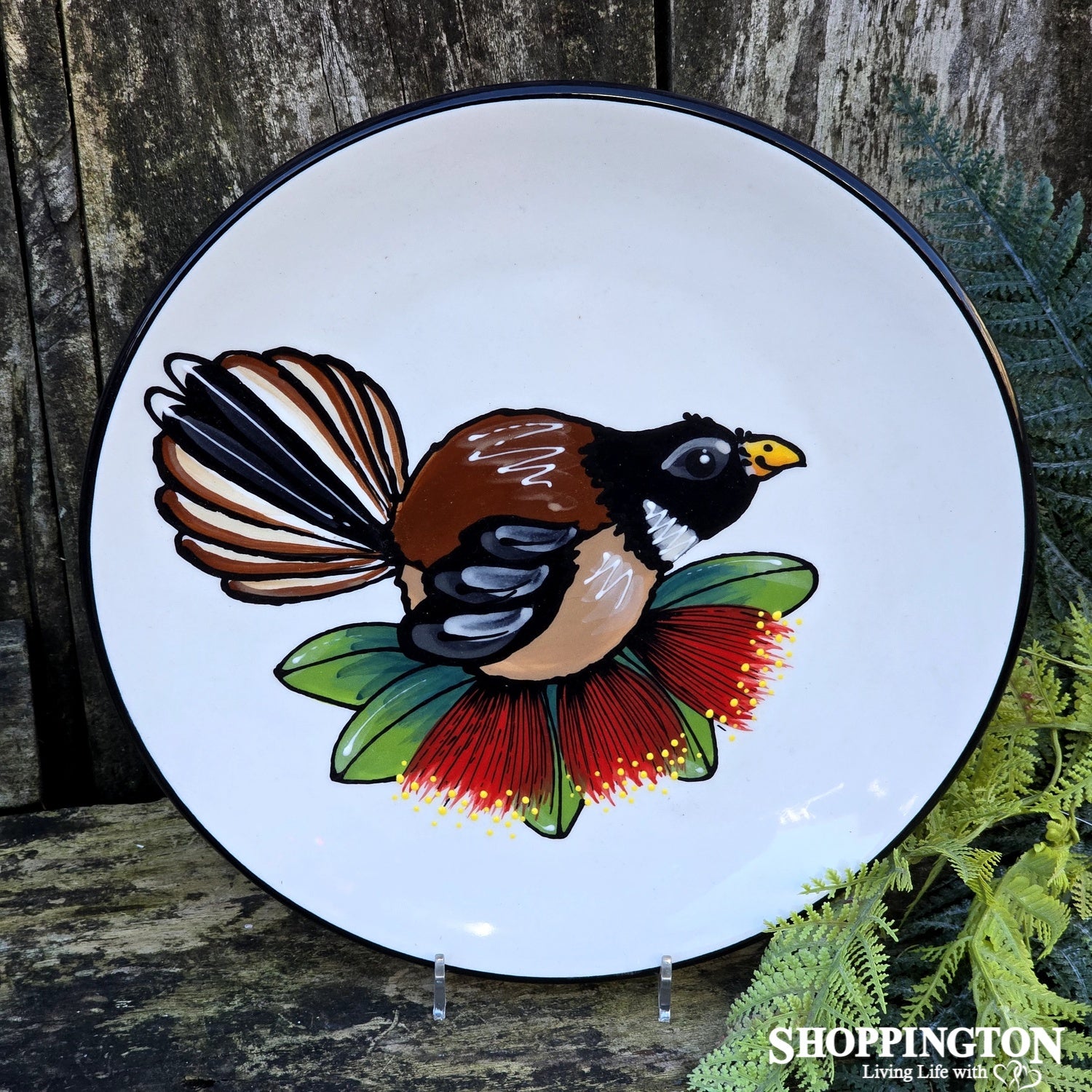 NZ Made Handpainted Round Plate / Classic Fantail is backordered and will ship as soon as it is back in stock.