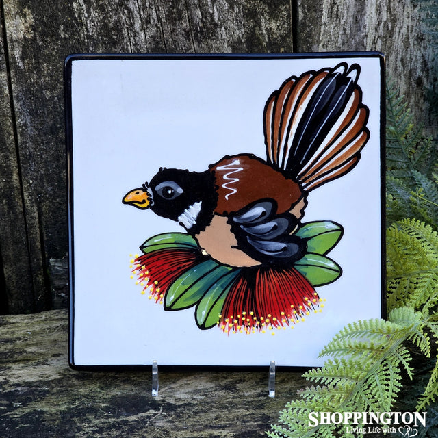 We love this NZ Made Handpainted Square Plate / 20cm x 20cm / Double Pohutukawa Fantail too!