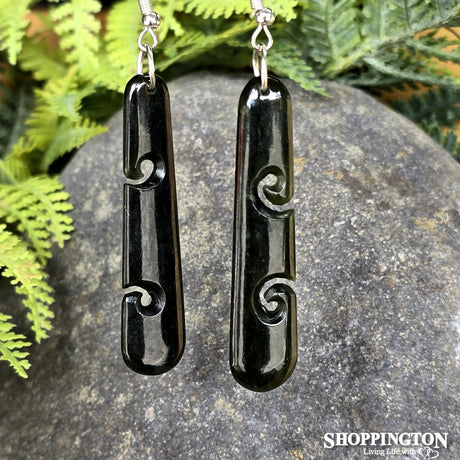 Earrings - Pounamu Koru Drop 53mm