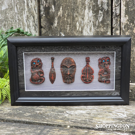 Framed Maori Art Work - Wood and Bone