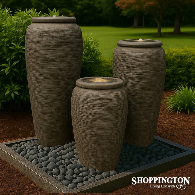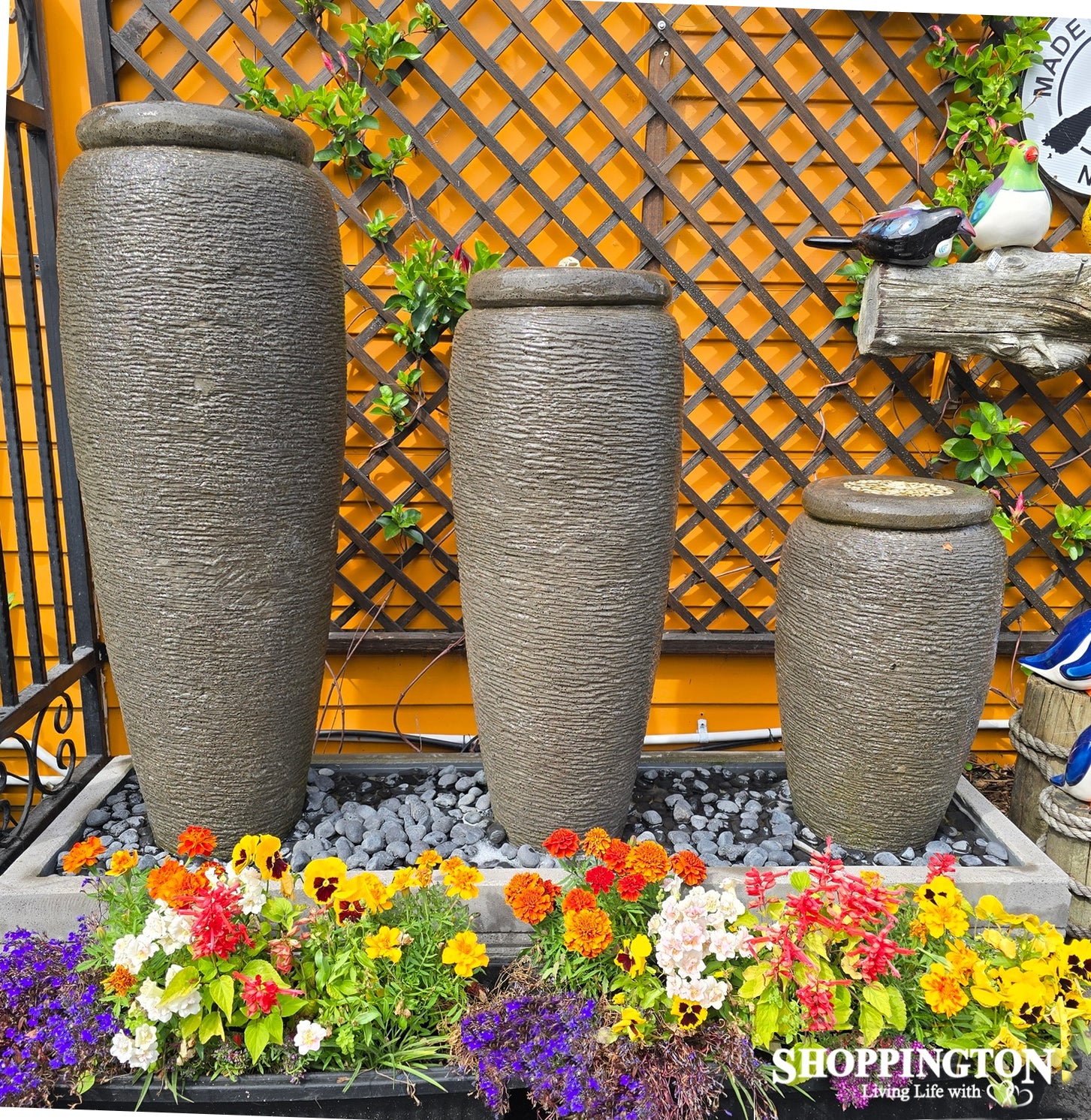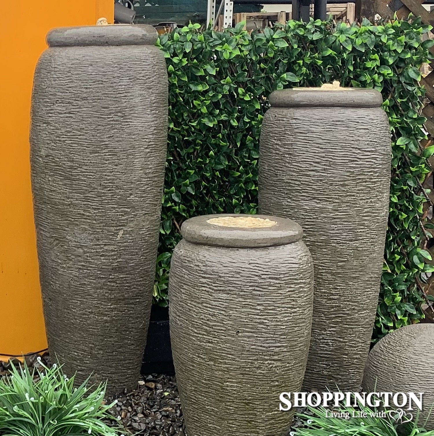 This water feature provides a stunning concrete urn with cylindrical detail. For those wanting a classical look in a water feauture these are great value. Sold individually, they also look great grouped in various sizes. A fabulous way to incorporate water and art into the garden.