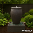 A classical urn sits on top of a square textured base.  Water gently cascades over the sides of the urn and into base creating a calming and cooling effect.  Perfect for a smaller garden or confined space, this water feature features a stunning concrete urn with cylindrical detail, a fabulous way to incorporate water and art into the garden.