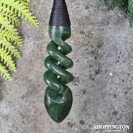 NZ Made - Hand Carved Taiaha with Pounamu Tip