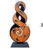 The large standing twist artwork (300mm high) is a contemporary representation of the Pikorua (Twist). This single-sided piece of art boasts super fine detail, paua inlay and comes complete with stylish black base, related story and protective box.