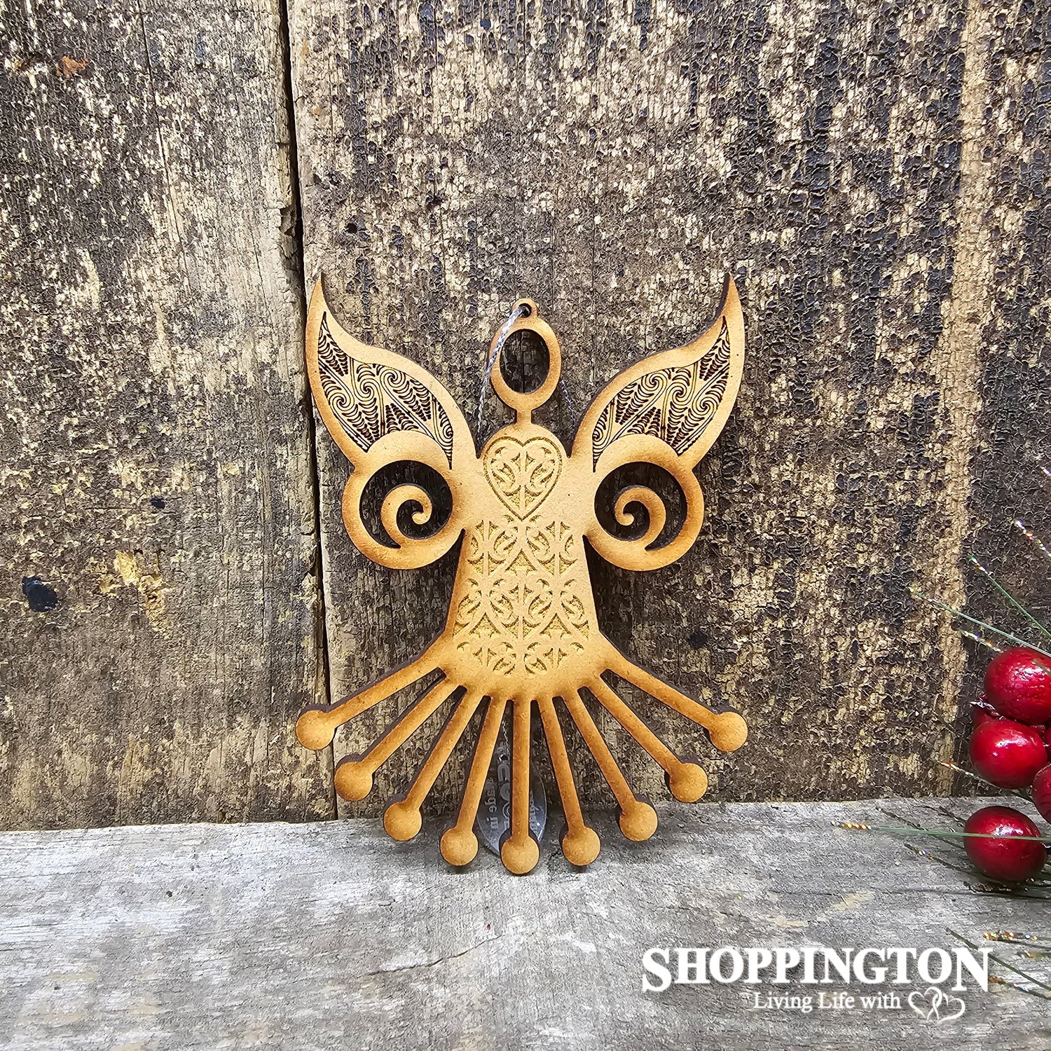Christmas Pohutukawa Angel Decoration available. New Zealand made wood finish.