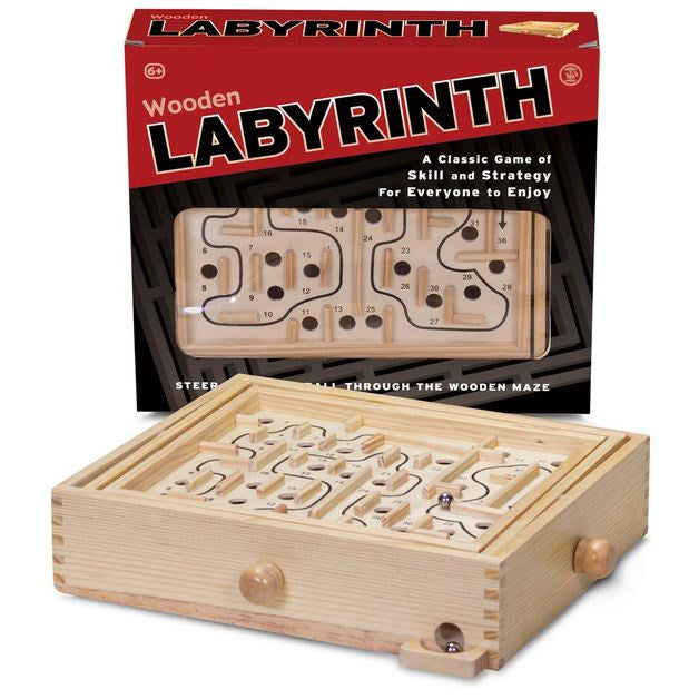 Guide the ball-bearing around the wooden maze without losing it down one of the holes. The maze can be tilted in both directions,Wooden Labyrinth tabletop game with ball bearing,Tilting maze game,Quality wooden build,Includes large ball bearing,Difficult enough to keep all ages entertained,Guide the ball bearing around the wooden maze without losing it down one of the holes.