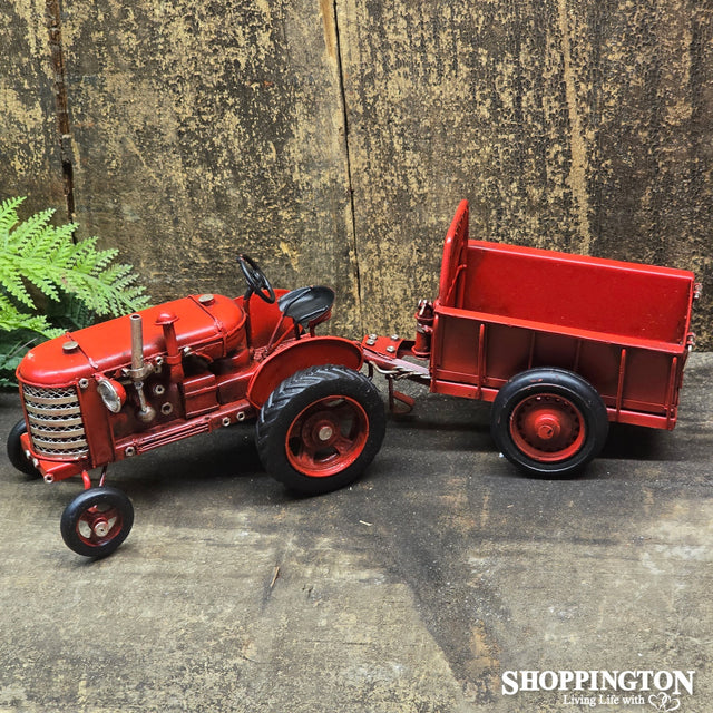 Die Cast Metal Red Vintage Tractor and Trailer